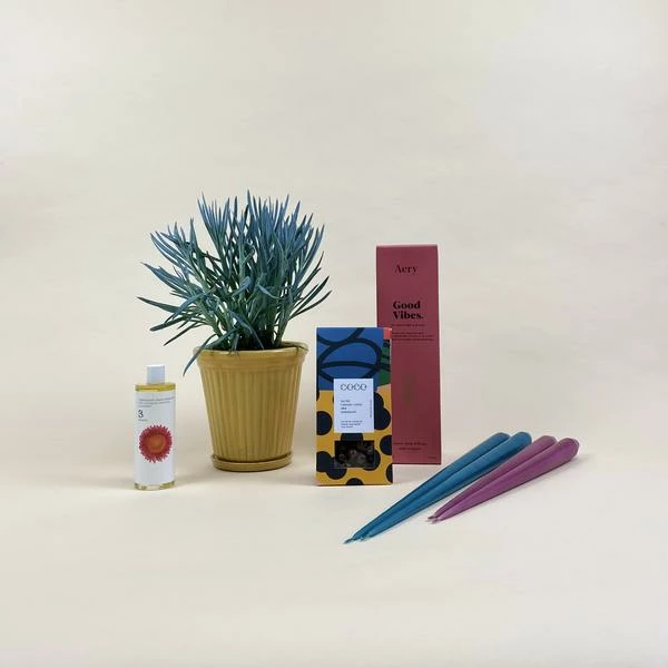 Our Good Vibes Gift Combination features some of our favourite Catkin gifts, with the option to add gorgeous Ester & Erik tapered dinner candles or a Catkin & Pussywillow flower. Gift combination boxes are available for Click & Collect from store or Same Day Local and Next Day Nationwide Delivery. This box includes: Senecio Plant in Yellow Pot Good Vibes Diffuser Salted Caramel Fudge Bramley Uplifting Body Oil.
