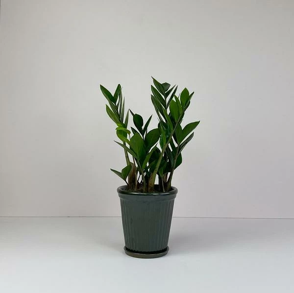These ZZ, Zamioculcas Zamiifolia, are a perfect statement piece for your home. They are easy to care for and make great gifts! Potted into a lovely dark green ribbed plant pot with saucer. The height of plant 40cm. They like to be in a well lit spot but not in direct sunlight. Water every 2 weeks. Pot Dimensions: W 17cm H 18cm