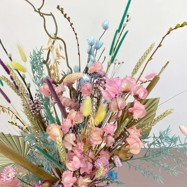 An everlasting arrangement of our favourite pastel stems. Available in a range of sizes and the option to buy with or without a vase. We also have letter box stems, posted straight to your door to have a go arranging yourself at home. A perfect gift or addition to the home, these are an eco-friendly Catkin & Pussywillow favourite. All of our bouquets are hand made to order meaning each one is truly unique. The pictures show an example of the bouquet, and you can expect to receive one featuring seasonal flowers similar in colour, style and texture. Vase type may differ to one in the photograph.