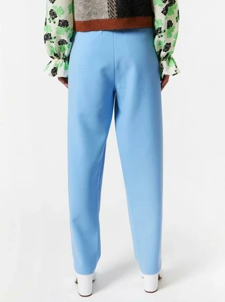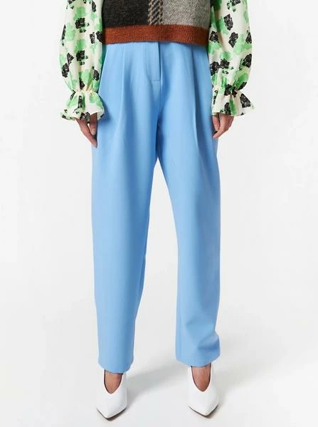 Loose fitted, tapered trousers in light blue with side pockets and pleats at front. The trousers are slightly cropped and have a zipper and button closure.These trousers are small at waist so we recommend going one size up. – Loose fit- High waist- The model is 176 cm and wearing a size 38/M Quality: 72% Polyester, 22% Rayon, 6% SpandexWashing instructions: 30°C. Iron on low heat. Shrinkage: Approx. 2-3%. Check care label inside item for further information.