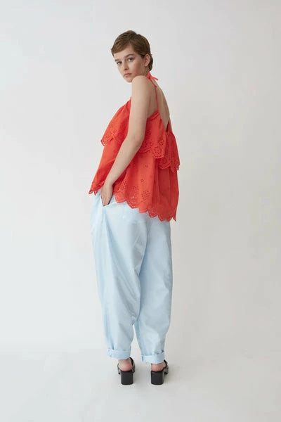 “Designer and creative director Trine Skoller founded this leading Danish fashion brand in 2002. Today, the label produces six annual collections, which are so artfully put together they could easily comprise your entire wardrobe. It’s all about contrasts for this playful atelier, fusing the feminine with the masculine, and the smart with the casual, to create garments that can be styled and restyled to suit their wearer, whatever the occasion. Bold silhouettes are realised through the artful use of ruffles or pleats, whilst simple staples are elevated through their use of colour or motif, giving them a touch of Stella Nova character. Pattern is also a key player for the Stella Nova look, whether paired to match or clashed for effect. “