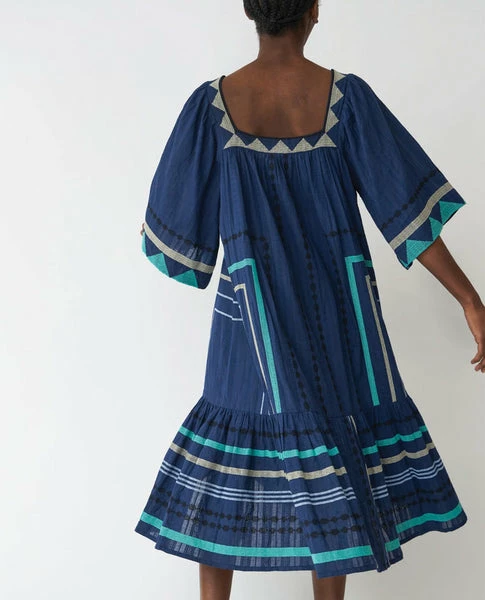 Stella Nova Bera My Blue Dress, a cool dress with embroidery details, short sleeves and square neckline. In a deep blue tone, the Bera My has a relaxed fit.- Voluminous in size. Go down a size if you prefer a more regular fit- Loose wide fit- The model is wearing a size 38 Quality: 100% CottonWashing instructions: Handwash in cold water. No iron. Shrinkage: Approx. 3-4%. Check care label inside item for further information.