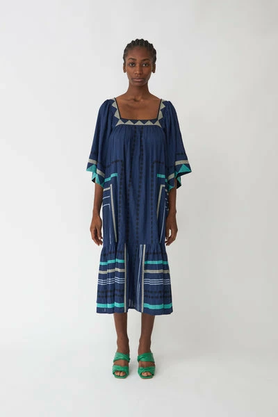 Stella Nova Bera My Dress – Blue Sea Cool dress with embroidery details, short sleeves and square neckline. – Voluminous in size. Go down a size if you prefer a more regular fit – Loose wide fit – The model is wearing a size 38 100% Cotton Handwash in cold water. Do not iron. Shrinkage: Approx. 3-4%.