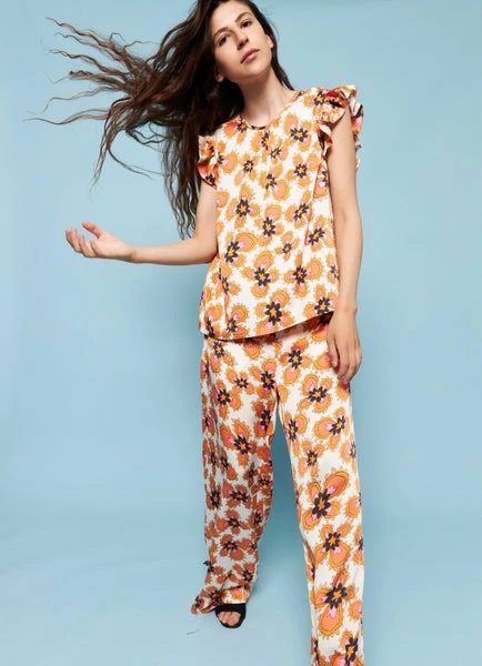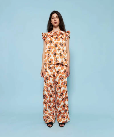 Stella Nova Bolette Top – Gardeners Flowers Beautiful top in 100% recycled polyester. The top has ruffle details on the shoulders and buttons at the back. – True to size – Regular fit – The look book model is 173 cm / 5’8″ and wearing a size 38 100% Polyester (recycled) 30°C wash Iron on low heat Shrinkage: Approx. 3-5%.