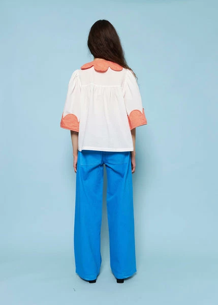 STELLA NOVA Carole Shirt – White/Red Loose fit blouse with big sleeves. The blouse has a feminine collar and buttons at the front.- True to size- Loose fit- The look book model is 173 cm / 5’8″ and wearing a size 38Quality: 100% Cotton Style ref: CS22-2951