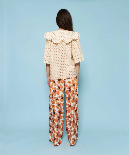 Loose fit blouse with big sleeves. The blouse has a feminine collar and buttons at the front. – True to size – Loose fit – The look book model is 173 cm / 5’8″ and wearing a size 38 Quality: 100% Cotton Washing instructions: Machine wash in cold water/Handwash program. Iron on low heat. Shrinkage: Approx. 3-4%. Check care label inside item for further information.