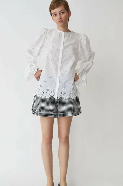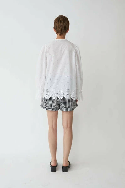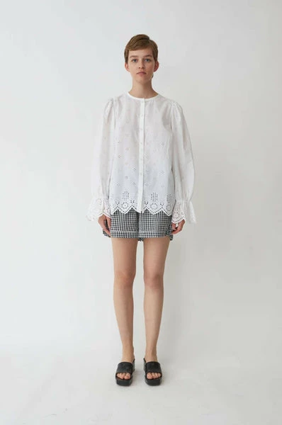 The Erina Lou Shirt has all the feminine details we love in a summer blouse, but without being overly fussy. A simple regular fit keeps the fuss in check. Endless possibilities for this essential blouse, bring on holiday, wear to work or just pair with jeans. Available in Orange Red and White. – Regular fit – Lace details – Long sleeves with an elastic band at wrists – Round neck and buttons down the front True to Size.100% Cotton Machine wash in cold water/Handwash program. Iron on low heat. Shrinkage: Approx. 4-5%. Made in India CP23-2995 001