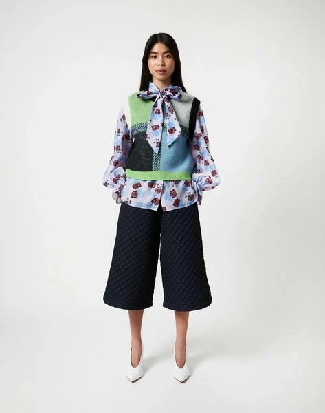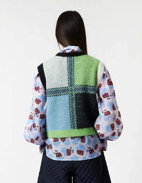 Cool colour block vest in green, black and blue. It comes in an Alpaca mix with a high, round neck. – True to size – Regular fit – The model is 173 cm / 5’8″ and wearing a size 38 Quality: 55% Baby Alpaca, 45% Nylon Washing instructions: Handwash in cold water. Iron on low heat. Shrinkage: Approx. 2-3%. Check care label inside item for further information.