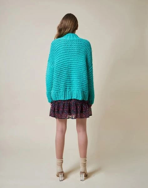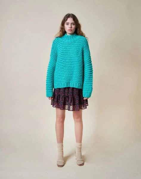Another must-have jumper from Stella Nova to keep you warm this winter. Comes in a beautiful Jade green. This garment is of high quality alpaca and handknitted in Peru.By purchasing this garment you support the art and labour of female craftsmen of the Andes of Peru.- True to size- Loose fit- 100% alpaca- The look book model is 173 cm / 5’8″ and wearing a size M Quality: 100% AlpacaWashing instructions: Handwash in cold water. Iron on low heat. Shrinkage: Approx. 2-3%. Check care label inside item for further information.