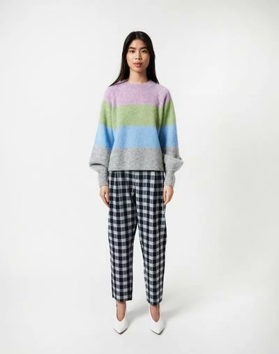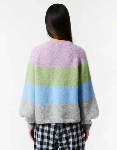 Stella Nova Laki Sweater – Multicolour Lovely wool mix sweater with round neck and balloon sleeves. – True to size – Regular fit 28% Wool, 32% Mohair, 40% Nylon Handwash in cold water. Iron on low heat. Shrinkage: Approx. 2-3%.