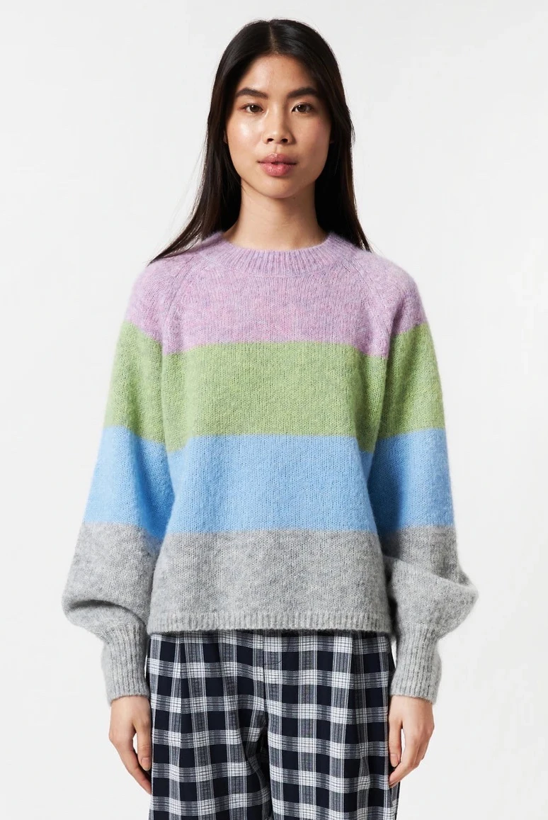 Lovely wool mix sweater with round neck and balloon sleeves.