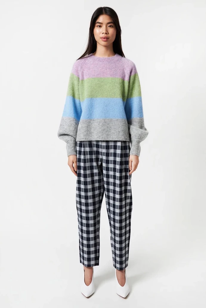 “Designer and creative director Trine Skoller founded this leading Danish fashion brand in 2002. Today, the label produces six annual collections, which are so artfully put together they could easily comprise your entire wardrobe. It’s all about contrasts for this playful atelier, fusing the feminine with the masculine, and the smart with the casual, to create garments that can be styled and restyled to suit their wearer, whatever the occasion. Bold silhouettes are realised through the artful use of ruffles or pleats, whilst simple staples are elevated through their use of colour or motif, giving them a touch of Stella Nova character. Pattern is also a key player for the Stella Nova look, whether paired to match or clashed for effect. “