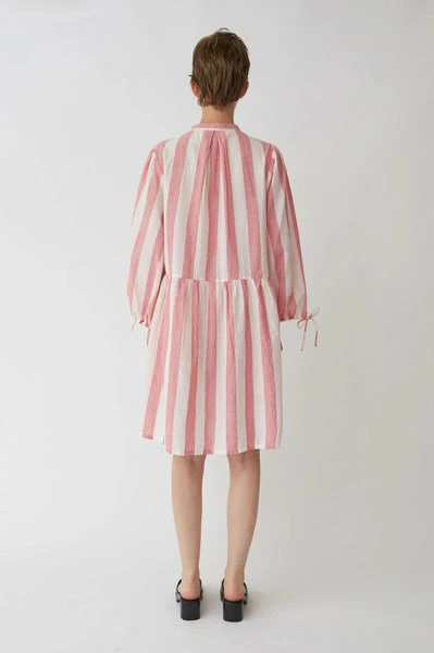 Lightweight mini dress with long sleeves and ribbons at the waist, which can be adjusted.- Regular in size- Loose fit- The model has size 38 onQuality: 100% Cotton Hand wash only
