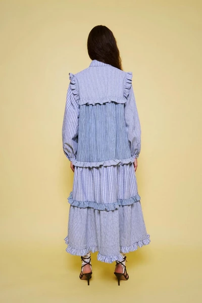 Stella Nova Linnea Dress – Blue Mix Long Linnea dress in soft denim with long sleeves, press buttons and a pockets detail at front. Wear with summer sandals, white trainers or chunky boots. Voluminous in size. Go down a size if you prefer a more regular fit Loose wide fit The look book model is 173 cm / 5’8″ and wearing a size 38 Fabric: 50% Linen, 25% Cotton, 25% Polyester