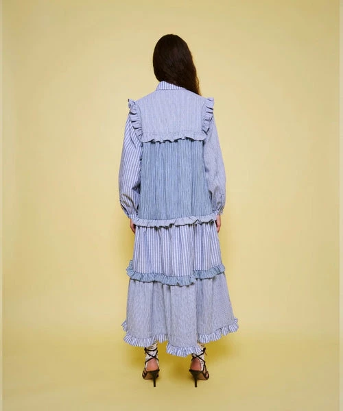 Long Linnea dress by Stella Nova in soft denim with long sleeves, press buttons and a pockets detail at front.