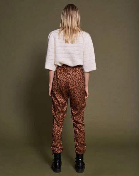 Loose trousers in leopard print with stretch. They have side pockets, an elastic waistband and pleats for a relaxed fit. – True to size- Loose fit- Normal waist- The look book model is 173 cm / 5’8″ and wearing a size 38 Style with the Salma Sweater in Ecru from Stella Nova. Quality: 97% Polyester, 3% SpandexWashing instructions: 30°C. Iron on low heat. Shrinkage: Approx. 3-5%. Check care label inside item for further information.