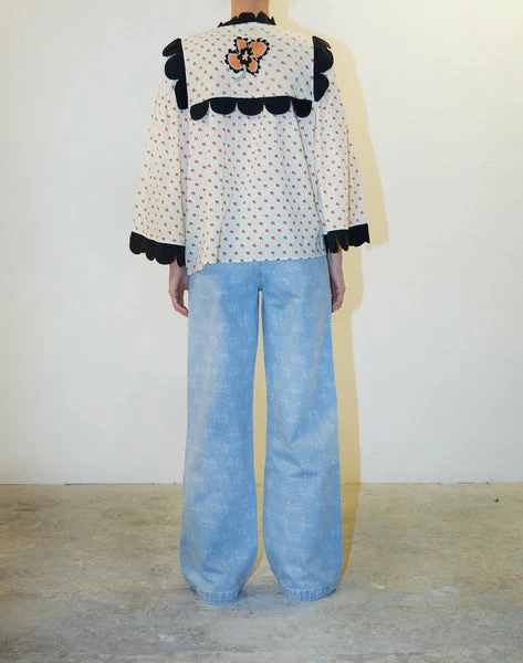 Loose fit blouse with embroidery details. – True to size – Loose fit – The look book model is 173 cm / 5’8″ and wearing a size 38 Quality: 100% Cotton Washing instructions: Machine wash in cold water/handwash program. Iron on low heat. Shrinkage: Approx. 3-4%. Check care label inside item for further information.