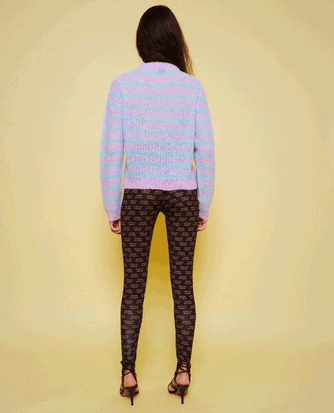 Stella Nova Rima Joe Multi Knit, a fluffy pastel coloured pullover jumper in colourful stripes of lilac and blue. Knitted from a fluffy blend alpaca blend this striped sweater has long sleeves and a round neck. 55% Alpaca & 45% Nylon Hand wash cold and dry flat to avoid stretching Model is 173cm and wears size 38 Size down if between sizes as Stella is a generously sized brand