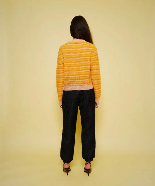 Stripe sweater by Stella Nova in an Alpaca mix with a high collar and long sleeves.
