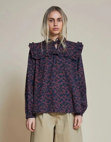 Beautiful blouse with long sleeves, ruffle details and a drawstring at front. – True to size- Loose fit- Ruffle details- The look book model is 173 cm / 5’8″ and wearing a size 38 Quality: 100% CottonWashing instructions: Machine wash in cold water/Handwash program. Iron on low heat. Shrinkage: Approx. 3-4%. Check care label inside item for further information.