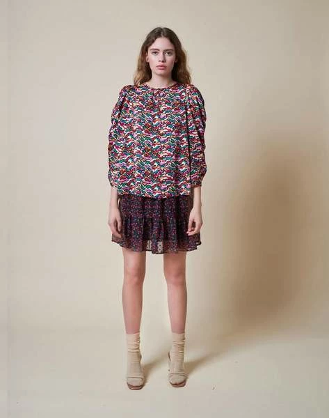 Stunning blouse in 100% recycled polyester with volume 3/4-sleeves and a round neck. We love its multicoloured pattern the call ‘Wild Feathers’. Wear it with a black mini skirt and boots – your party outfit is complete. If you love this pattern we also have it in a dress; the Addison Dress from Stella Nova. – True to size- Regular fit- The look book model is 173 cm / 5’8″ and wearing a size 38 Quality: 100% Polyester (recycled)Washing instructions: Hand wash in cold water. No iron. Shrinkage: Approx. 3-5%. Check care label inside item for further information.
